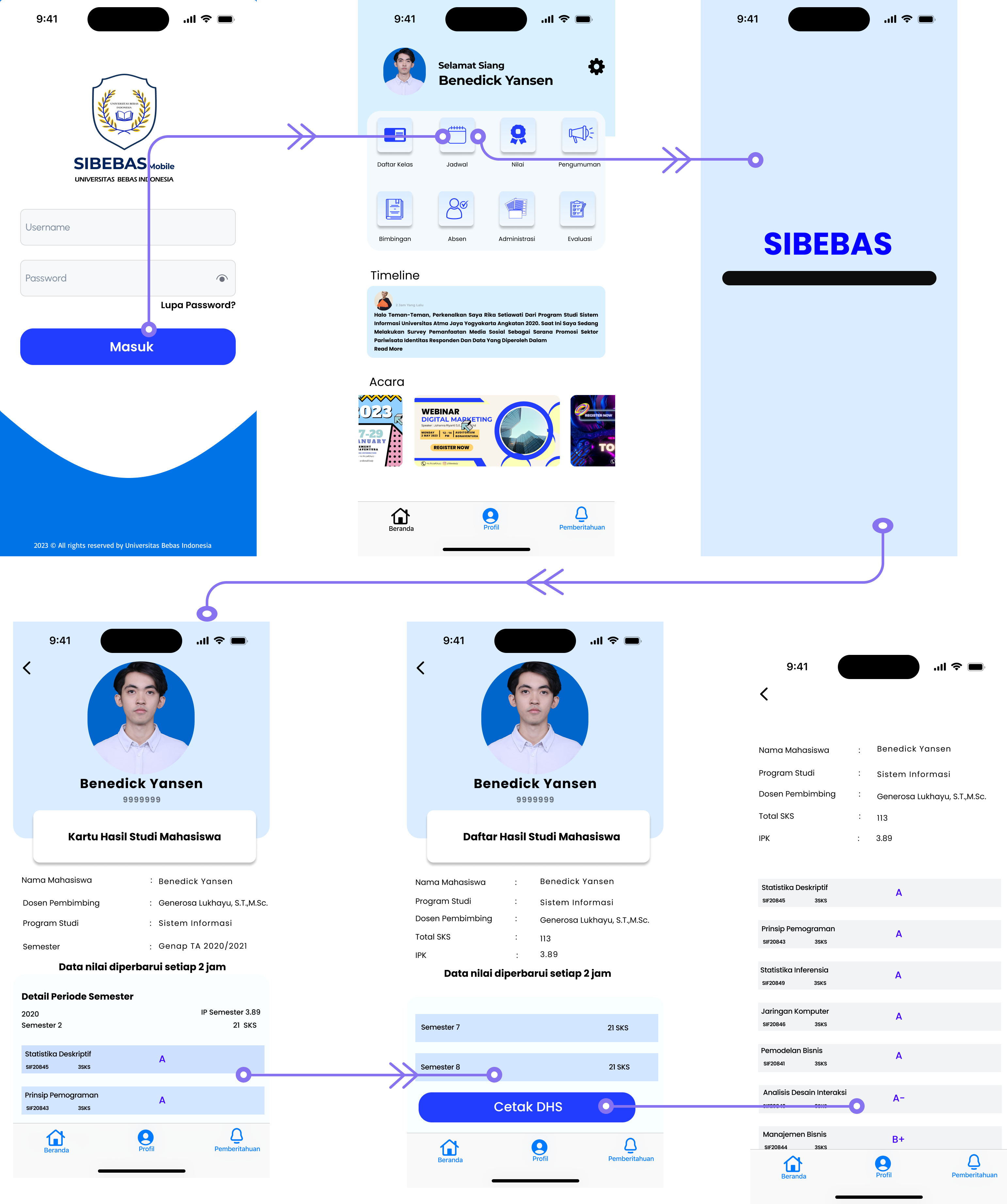 4. Technology & Feasibility Study: Memilih teknologi yang tepat untuk pengembangan, seperti framework berbasis web dan mobile untuk memastikan aksesibilitas yang optimal.Menentukan integrasi dengan sistem akademik kampus untuk sinkronisasi jadwal dan penilaian.